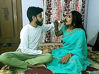 Indian teen boy fucking with hot beautiful maid Bhabhi! Uncut homemade sex
