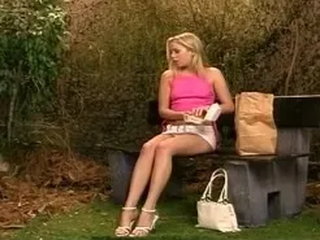 Young blondie with long beautiful legs in action