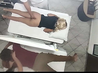 Erotic Massage on the Body of the Beautiful Wife next to her Husband in the Couples Massage Parlor
